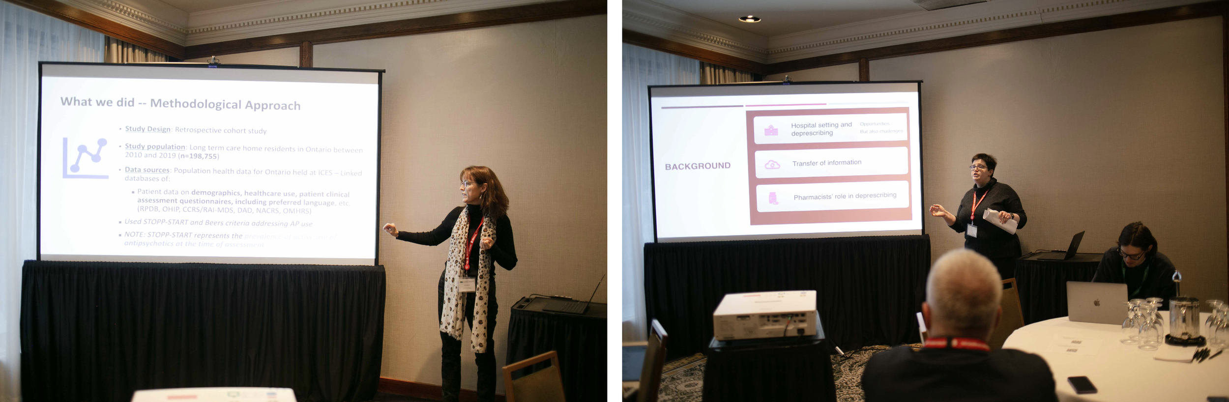 Dr Wade Thompson, de l’Université de Colombie-Britannique, et Dre Lisa McCarthy, de l’Université de Toronto, nous ont présenté les réalisations et les projets futurs de deprescribing.org. Cette organisation a pris beaucoup d’ampleur au Canada et dans le monde depuis les dix dernières années, en publiant entre autres cinq lignes directrices et algorithmes de déprescription fondés sur des données probantes. Il y a, à ce jour, plus de 30 adaptations ou traductions de ces documents à travers le monde.
