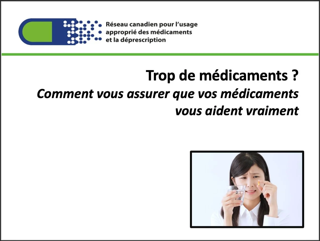 Présentation pour le public sur l’usage sécuritaire des médicaments
