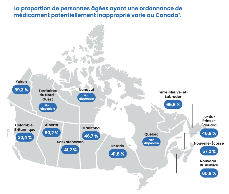 Téléchargez cette infographie pour en savoir plus sur les médicaments potentiellement inappropriés et sur la façon dont ils affectent les gens à travers le Canada.